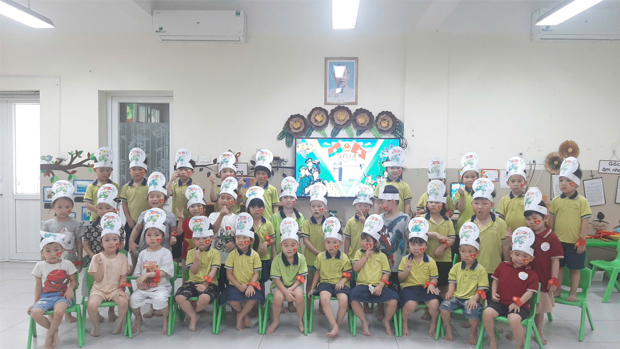 Dưới đây là một số hình ảnh hoạt động của trẻ chào mừng kỷ niệm 50 năm ngày giải phóng Miền Nam thống nhất đất nước (30/4/1975 - 30/4/2025) của cô và trò lớp MGN B2 trường Mầm non Long Biên A:
