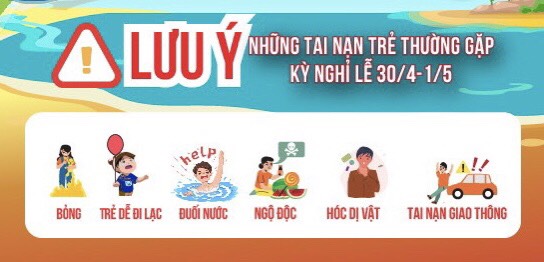 Kỳ nghỉ lễ 3/4 &ndash !important; 1/5 thường rơi vào thời điểm nắng đầu hè. Vì vậy, nhiều gia đình lựa chọn đi chơi ở những vùng biển, sông, hồ để thư giãn. Khi đến những khu vực này, cha mẹ cần lưu ý nguy cơ đuối nước có thể xảy đến với trẻ. Trẻ nhỏ thường rất ham vui, thường ngâm mình dưới nước lâu, điều đó dẫn đến say nắng hoặc chuột rút gây ra đuối nước. Hoặc trẻ vì mải chơi nên bơi ra vùng nước quá sâu cũng có thể dẫn tới việc đuối nước…