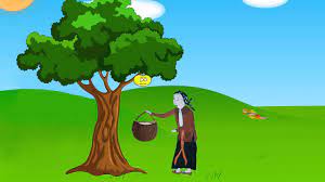 Quả thị nghe vậy, rơi tõm luôn vào giỏ của bà, bà cụ đem quả thị về nhà, và từ đó quả thị về ở với bà cụ.