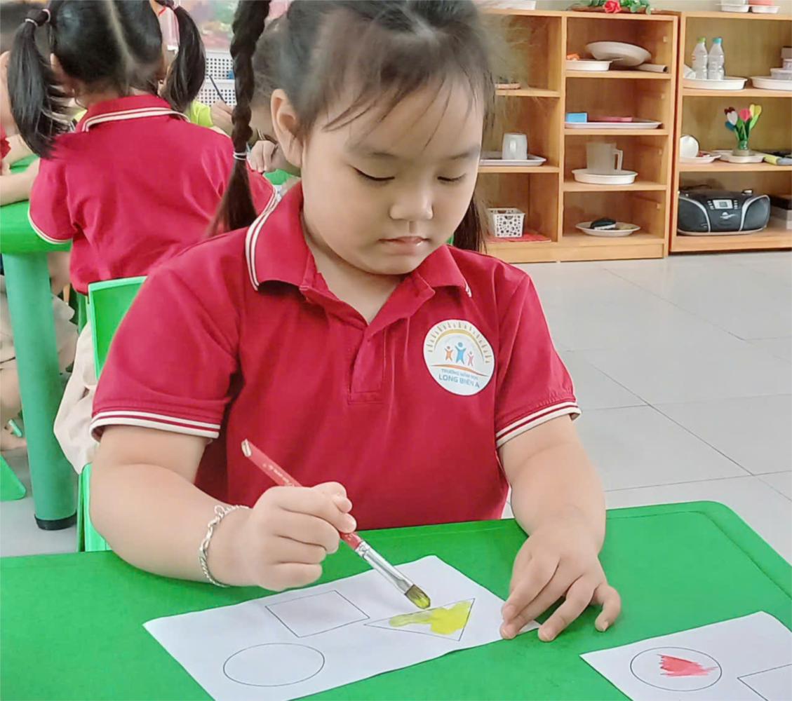 Chơi với màu nước đối với trẻ mầm non là 1 trải nghiệm vô cùng thú vị. Ngoài việc trẻ được làm quen với 1 loại màu mới, được cầm 1 loại bút mới (cọ vẽ ) thì qua hoạt động rèn luyện kỹ năng sử dụng màu nước trẻ sẽ học được cách bắt đầu – diễn ra – kết thúc như thế nào. Từ cách rửa cọ và lau khô trước khi chuyển sang màu mới. Sau khi vẽ xong sẽ trả lại sạch sẽ cho bạn kế tiếp.