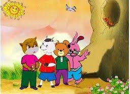 Chó, Thỏ, Dê đều cuống lên, chạy tới cứu Mèo hoa. Dê nhanh hơn, túm được đuôi Mèo hoa, cố lôi lên mà không được. Chó liền chạy tới ôm lấy Dê, rồi Thỏ ôm lấy Chó. Chó, Dê, Thỏ hợp sức mà lôi, cuối cùng đã lôi được Mèo hoa lên bờ, tuy ai cũng mệt phờ...