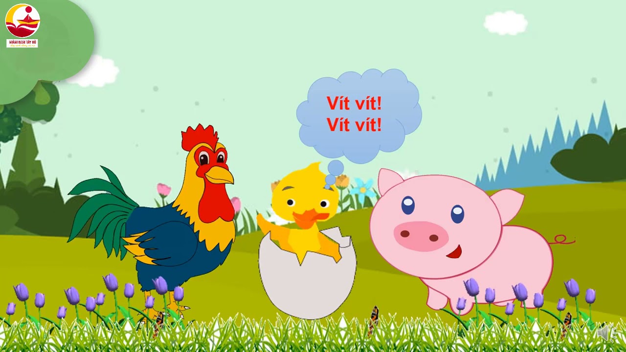 Quả  !important;trứng lúc lắc, lúc lắc rồi vỡ đánh tách một cái. Vịt con ở trong trứng ló đầu ra kêu: