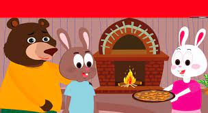 Bác Gấu Đen đây ! Mưa to quá, cho bác trú nhờ một đêm. Thỏ Nâu không mở cửa, nó cào nhàu :