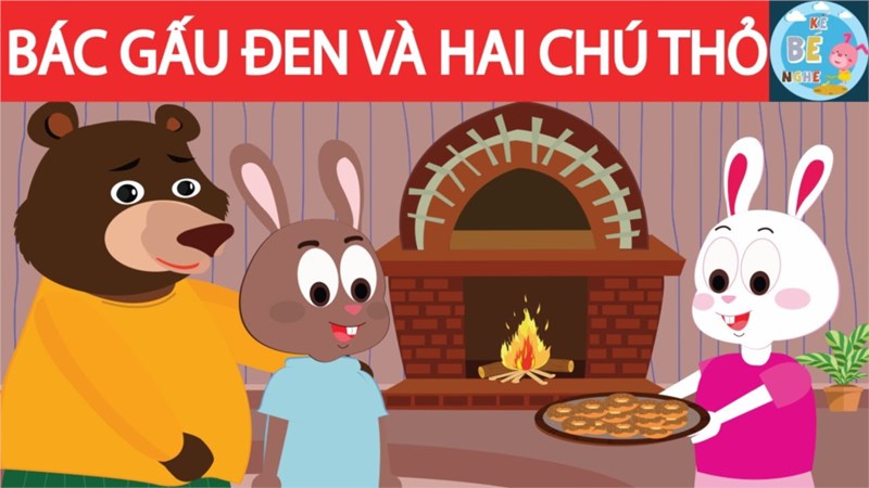 Thỏ Trắng dắt bác Gấu Đen vào nhà, kéo ghế mời bác ngồi trước bếp lò. Gấu Đen hơ người một lúc, nước mưa trên mặt cũng khô, trên cổ cũng khô.
