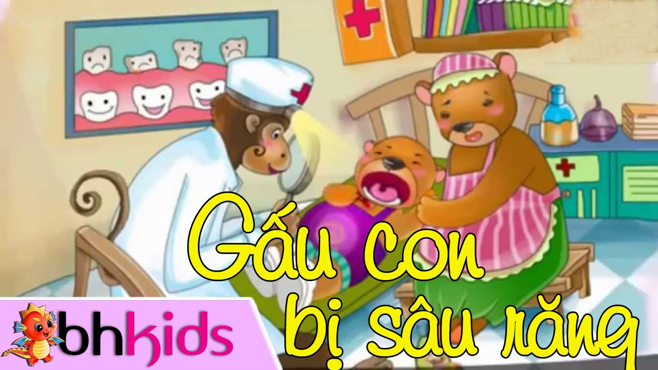 Hôm sau, Gấu mẹ phải đưa Gấu con đến bác sĩ khám bệnh. Bác sĩ bảo: “Này Gấu con, răng cháu sâu nhiều quá, phải chữa ngay thôi. Nếu để lâu sẽ bị sún hết đấy. Cháu nhớ là không nên ăn nhiều bánh kẹo, nhất là vào buổi tối. Hằng ngày phải đánh răng trước khi đi ngủ và sau khi ngủ dậy”.
