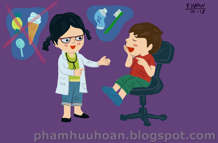 - Cậu phải đánh răng vào buổi tối và buổi sáng khi ngủ dậy. Nhớ súc miệng nước muối và không ăn kẹo vào buổi tối.